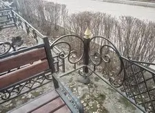 Что же потребовалось нам для существенного улучшения ситуации? Мы поставили ограду на гранитный цоколь. Это значительно улучшило ее восприятие как ограждения. Ограду сын усопшего покрасил сам, это очень показательно для меня в деле обустройство мест захоронений, не каждый найдет силы и время. Мы уложили пол из гранитной брусчатки. Установили новую лавочку и обновили изображение и надпись на памятнике. Сделали удобный подход к могиле от дороги. Результат нашей работы перед вами ниже.