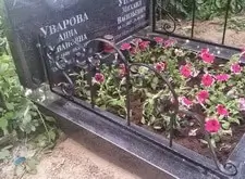 Со временем так получилось, что могила оказалась на проходе и часто по ней ходили люди, конечно, не специально, а просто, потому что так было удобно. Но это не приятно родственникам, я их прекрасно понимаю. Место захоронения очень ограничено по размерам, поэтому решили сделать ограждение частью цветника, посадить цветы в цветник, восстановить лакокрасочное покрытие креста за памятником. Раньше, когда делали памятник, планировалось сверху водрузить гранитный крест, но так и смогли его сделать вовремя, поэтому в этот раз решили доделать и эту работу. Крест сделали, но в таких размерах не просто сделать его восьмиконечным, поэтому изображение нужного креста нанесли гравировкой. Помимо прочего – изображение обработали составом от пропадание в дождь. В очередной раз все довольны результатом работы