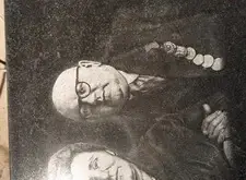 Решено было переделать все, если бы ограда не была такая крепкая, ее тоже заменили бы, но ограничились только ремонтом и перекраской. Для начала мы отобрали изображения для портрета и сделали макет гравировки.