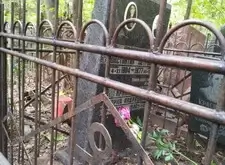 Далее демонтируем все с территории могилы и выпрямляем ограду. Для этого потребовалось полностью откопать две задние ножки, выпрямить ограду и заново залить цементом.