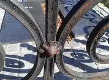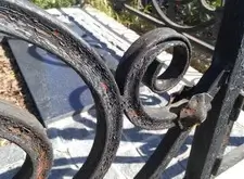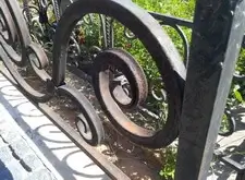Клиент хотел остановиться на этом и покрасить ограду сам, но через некоторое время попросил сделать это нас. Полностью согласен с таким решением, поскольку среди тех могил, что лично я видел, данная ограда одна из сложных. А хорошо ее почистить и покрасить сможет не каждый. Посмотрите на ограду поближе.