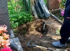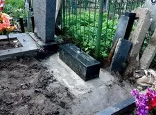 Затем мы вновь вернулись на кладбище: нам предстояло демонтировать основание надгробья, с чем мы и справились на следующем этапе работы.