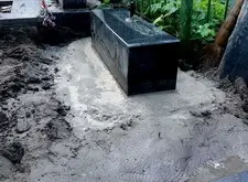 Пока бетон высыхал окончательно, мы приводили в порядок постамент, готовя его к посадке доставленного на участок после переполировки памятника.