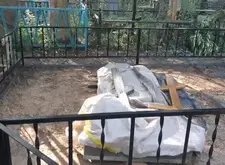 На данном участке нам предстоял достаточно большой объём работ. Надо было восстановить снятый памятник и привести в порядок место захоронения в целом.