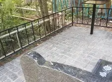 Так выглядит окончательный вариант места захоронения. По факту на этом участке мы переустановили памятники, восстановив одно из надгробий, покрасили оградку, замостили внутреннюю территорию брусчаткой и поставили лавочку со столиком. После окончания работ надписи на памятниках были дополнительно обработаны акриловой краской, это защитит их от пропадания в дождь и от пятен пыльцы растений и грязи.