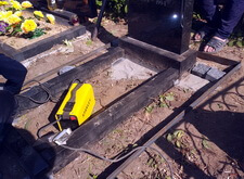 После того, как памятник был отодвинут, начинаем выравнивать его площадку. Досыпаем землю.