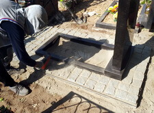 На этом работа с данным объектом была завершена. Памятник выставлен по уровню на качественном основании, которое уже никуда не поедет и не просядет. Небольшую могилу окаймляет гранитная брусчатка, что дополнительно придаёт месту захоронения ухоженный вид.