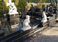 В ходе работ возникло небольшое недопонимание между нами и администрацией кладбища. Нас попросили убрать выступающую на проезжую часть площадь прилежащей территории. Конфликт был урегулирован, мы немного подрезали гранит и положили в образовавшуюся нишу холодный асфальт.