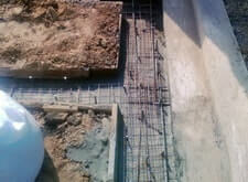 Исходное состояние:Стандартный ленточный фундамент по периметру участка, металлический крест и мраморная плита с надписью