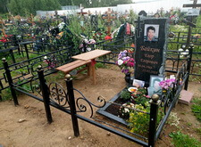Ниже приведены кадры с промежуточного этапа работы: брусчатка уже уложена на могилу и засыпана пескобетонной смесью.