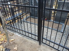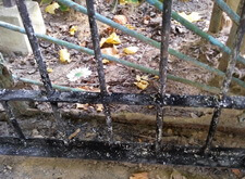 Далее мы чистим ограду до металла, мы используем для этого электрические болгарки и металлические щетки, там где мы не достаем болгарками, мы чистим ограду ручными щетками и ножами.